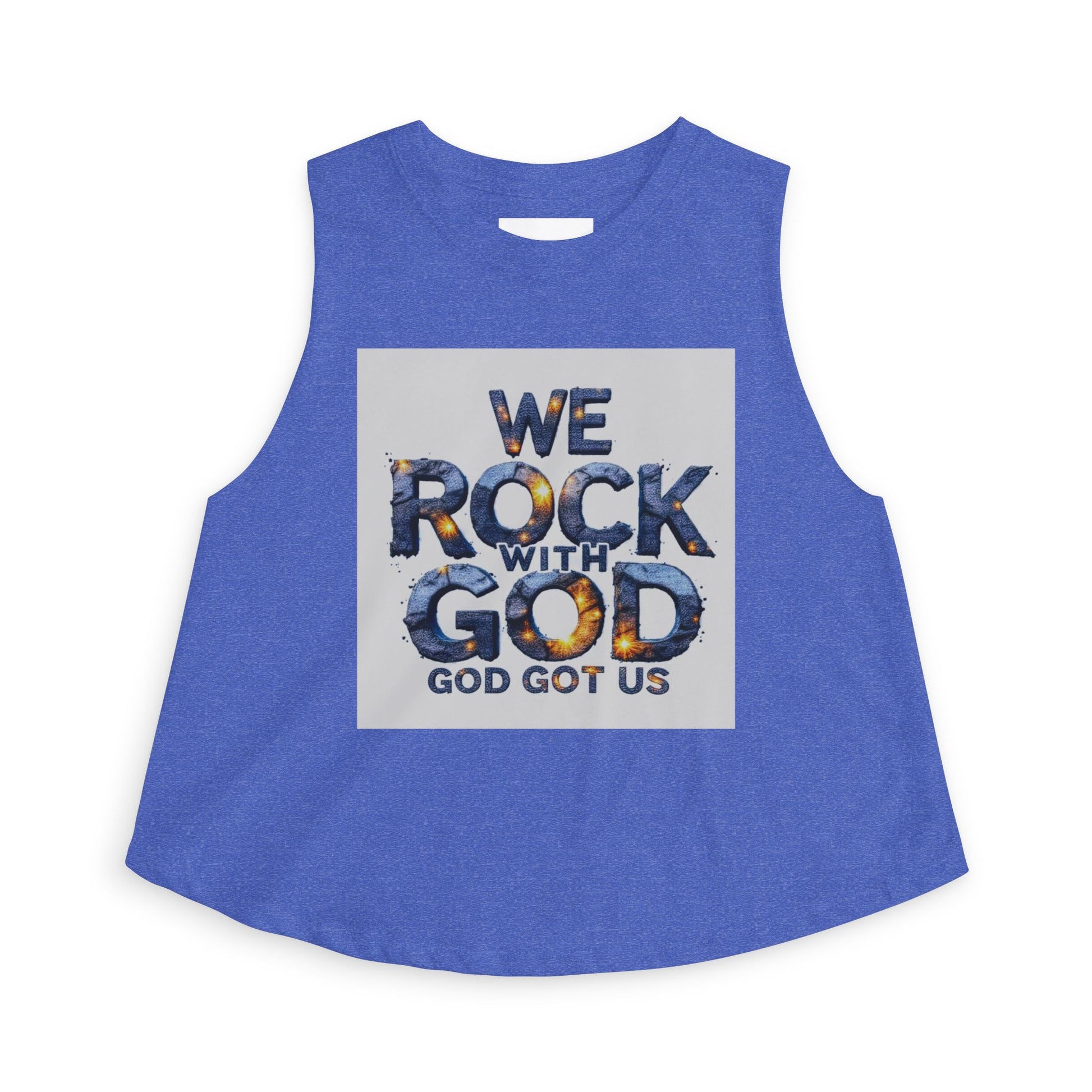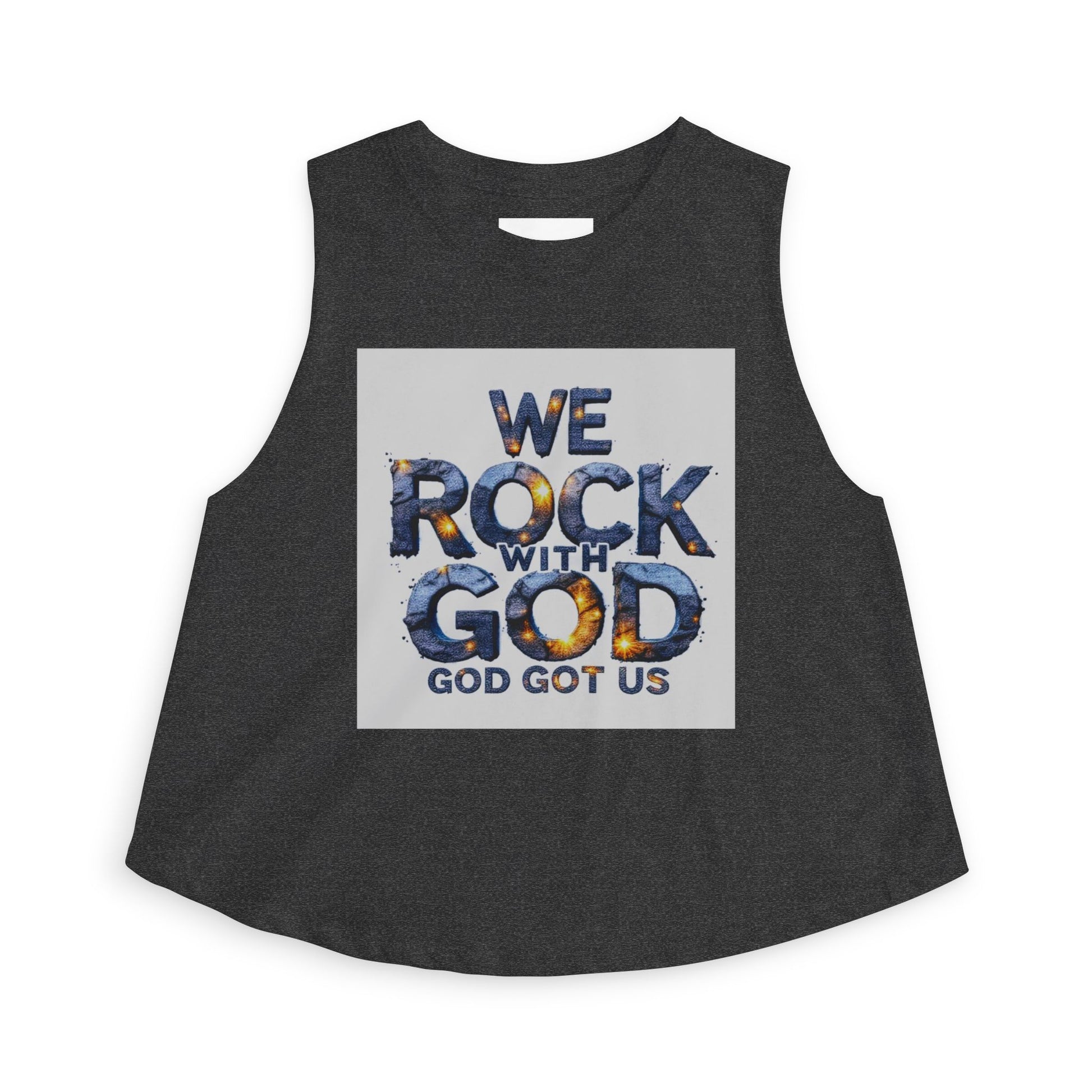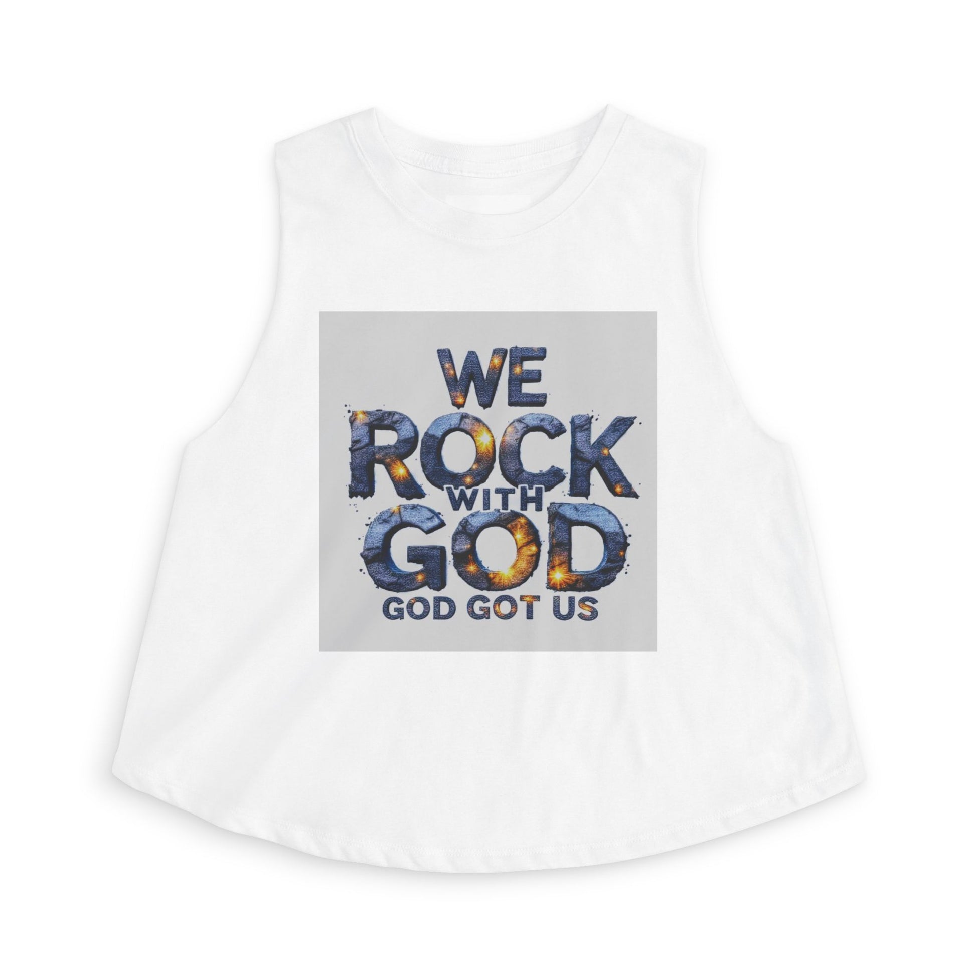 Light, airy, and full of faith—this cropped tank brings a casual, confident voice to everyday wear. The bold “We Rock With God / God Got Us” graphic sits center-front with textured lettering that feels both modern and soulful. Cut with raw sleeve edges and a relaxed silhouette, the top drapes easily over high-waist jeans or a flowy skirt. The ultra-light fabric keeps it breathable on warm days or layered under a denim jacket for evening gatherings. Wear it to worship nights, small group meetups, or while volunteering—this crop top reads like a declaration and moves with you through the moments that matter.